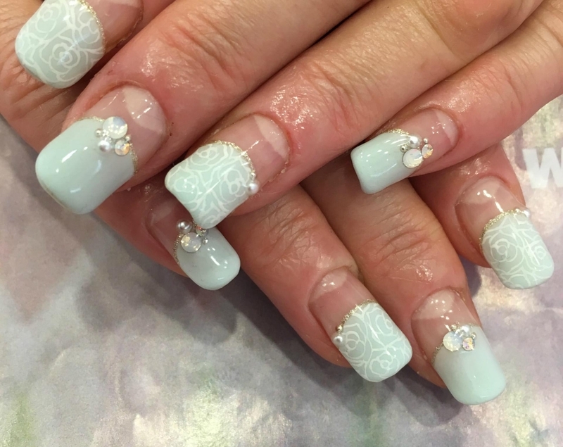 丸フレンチに、人差し指と薬指は薔薇のレース仕様にしています。